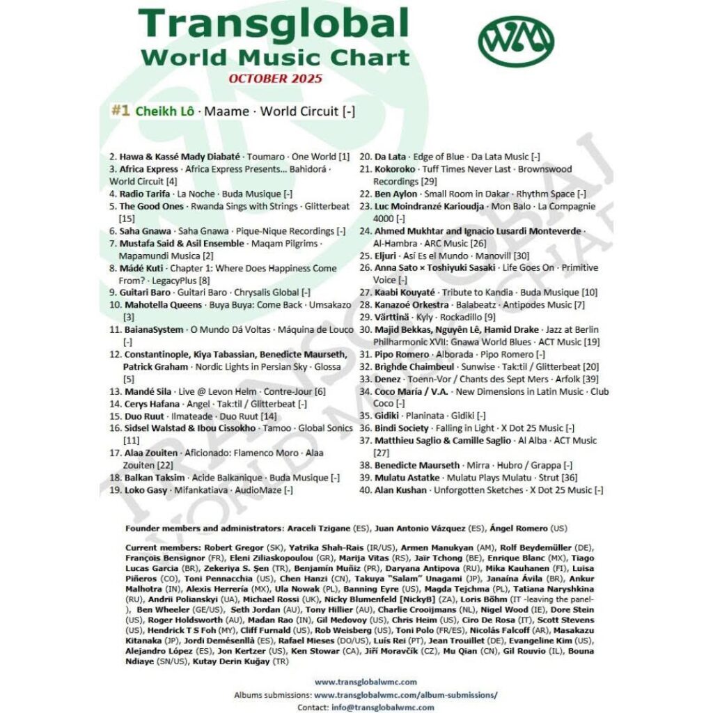 Le retour de Cheikh Lô est marqué d’un sceau international. Son dernier album Maame, sorti le 26 septembre, vient de décrocher la première place du Transglobal World Music Chart d’octobre 2025, un classement mondial qui met en lumière les meilleures productions de musiques du monde.